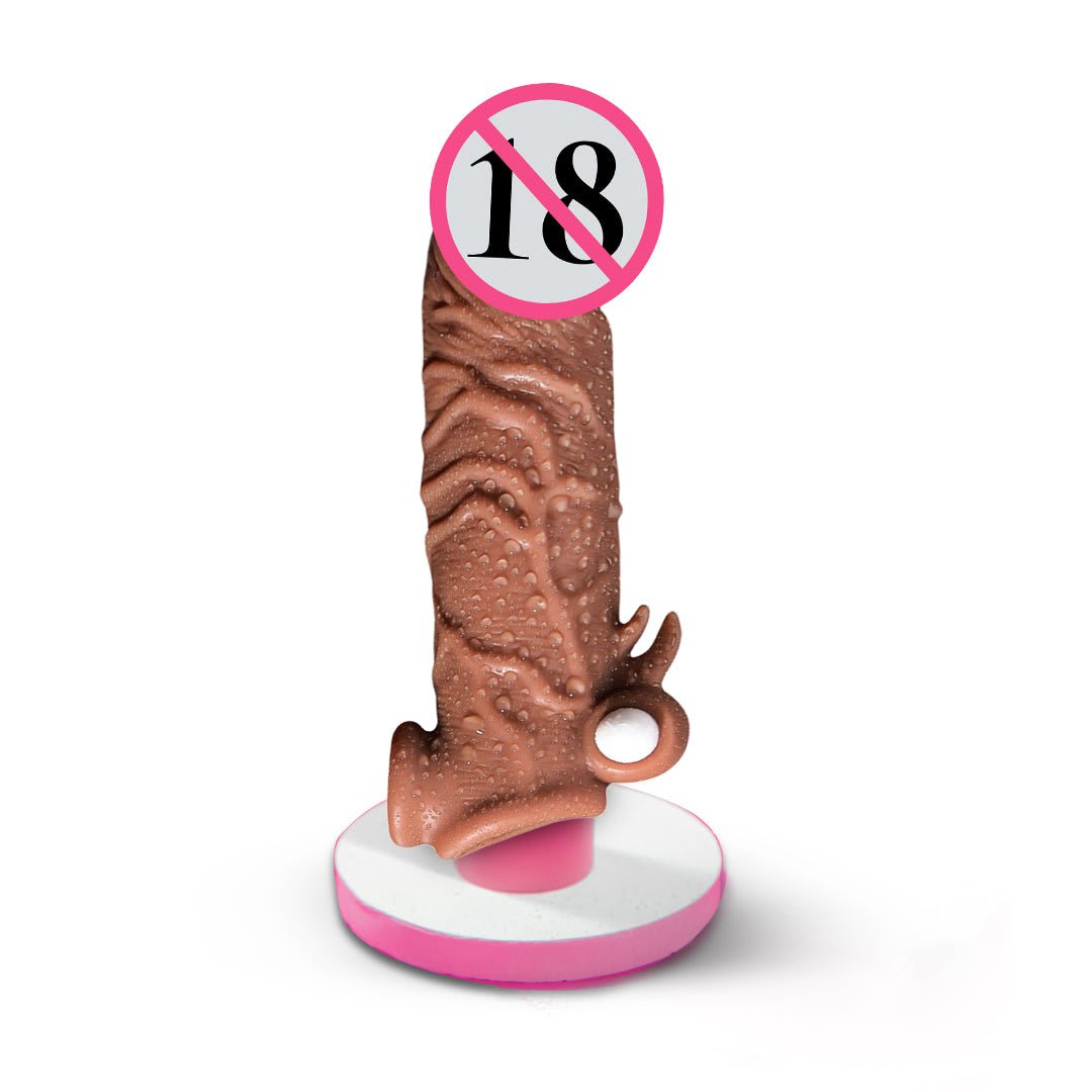 Soft & reusable 6 inch silicone condom sleeve for men with real feel texture.